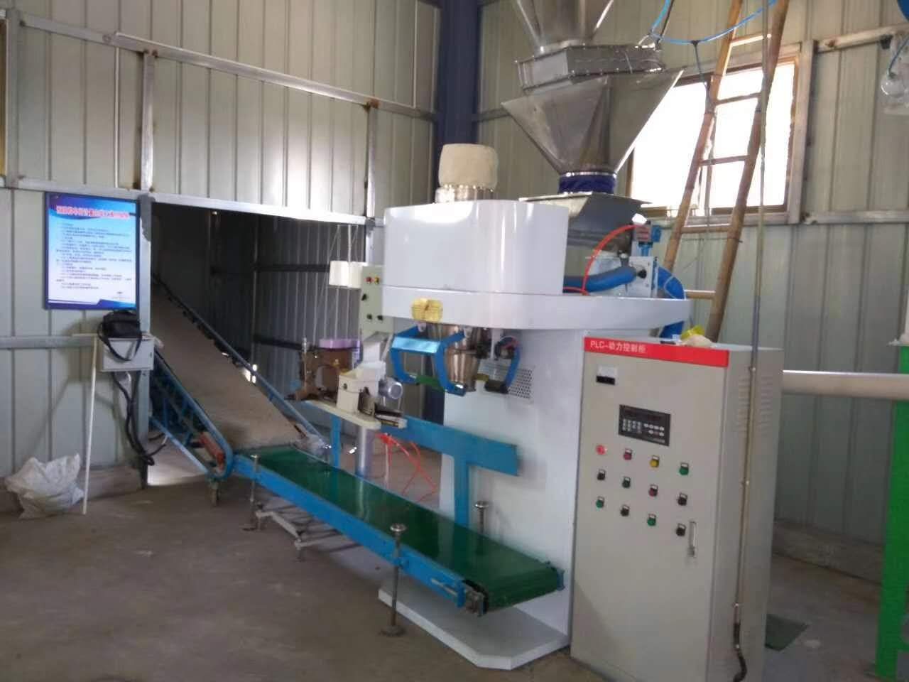 包裝機使用過程:人工協(xié)助上袋,自動稱重、夾袋、充填,經(jīng)輸送帶傳遞進行自動封口或縫包